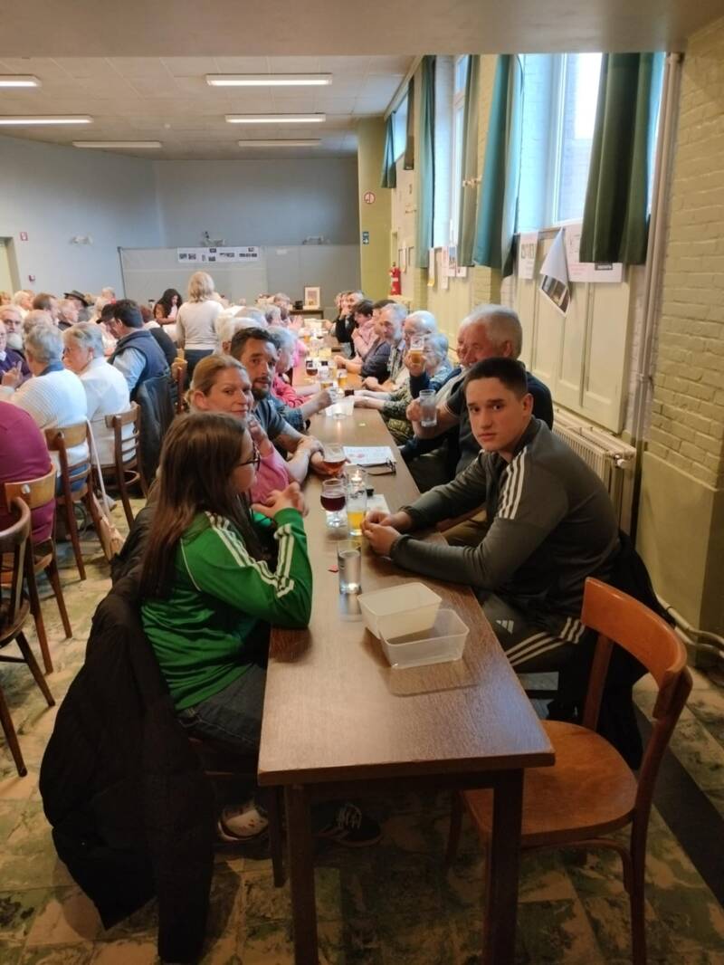 Het begon al heel vroeg ’s morgens. Onze bestuursleden waren paraat om de zaal tot in de puntjes klaar te zetten. Met 86 inschrijvingen moesten we een beetje puzzelen om de tafels te plaatsen en ook nog ruimte te behouden voor de barbecue en de tombolaprijzen. De frigo’s werden gevuld met vooraf gekoelde dranken.
